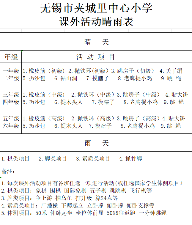 无锡市夹城里中心小学课外活动晴雨表(2025.9)